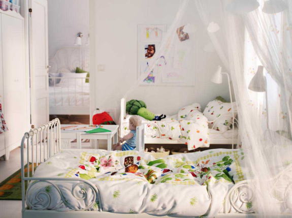 フレームやヘッドの大きい豪華なベッドは見た目は素敵でも、子供部屋の大半のスペースをとってしまうので共同部屋ではおすすめではありません。
