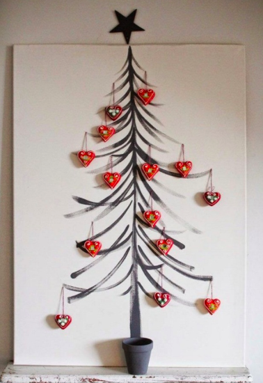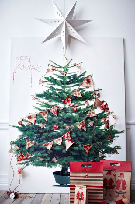 クリスマスツリーのフォトを吊るす!手軽でちょこっとしたスペースにも飾れる壁掛けツリーアイデアです。
