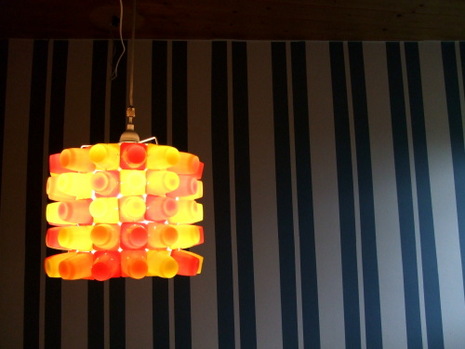 食べ終わったヨーグルトの容器で、カラフルでポップなランプシェードが出来上がりました。