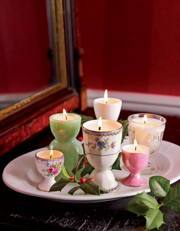 エッグホールダーのような、楽しい形の入れ物でキャンドルを作ると、