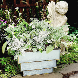 ちょっとしたエクステリアを彩る小さなリサイクルプランターです。