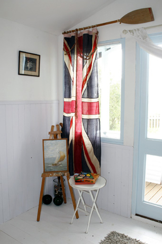 ボートのオールは長さもあり、形もデコレーティブで、カーテンロッドに