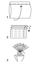手で持ったまま扇状に開く。 - ワイングラスやウォーターグラスに添え入れる。