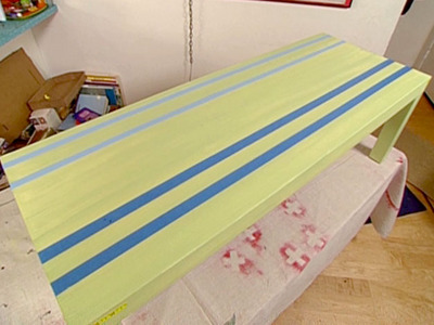 インテリアを明るく飾るストライプ柄にペイントした、大き目のコーヒーテーブルです。