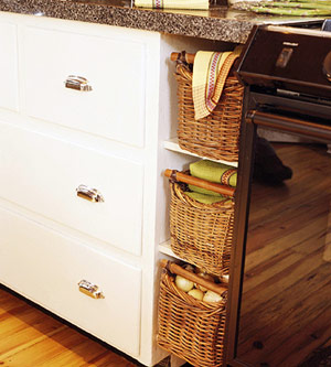 通気性も良く、見た目も素敵、取出しが簡単で便利なバスケットは、キッチンの収納に大活躍します。