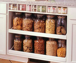 調味料や乾燥食は、素敵なガラス容器に入れて、カウンターや棚に綺麗に並べて、