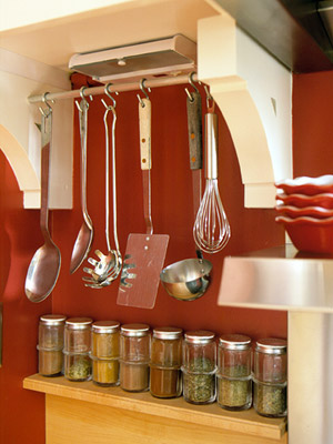 スパイスラックや、調理道具などをしまう場所に活用できます。(写真真ん中)