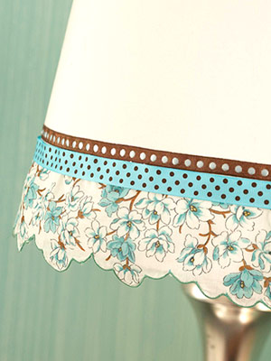 エッジのデザインが素敵なハンカチを利用して、シェードにスカートを取り付けています。