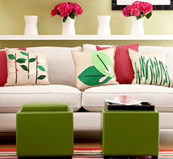 クッションのメインデザインやベースカラーを、家具の色に合わせます。
