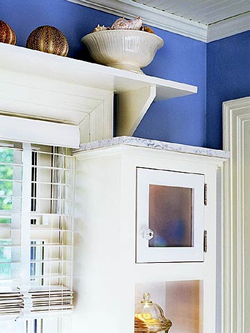小さな飾りだなを取り付けるスペースがあれば、デコレーションと収納を兼ねて利用できます。(右上)