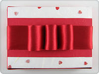 品のあるリボンボウを、箱いっぱいの大きさに作り、上品に飾りとめます。