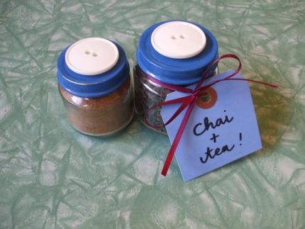 写真右のスパイスは、瓶のふたにマグネットを取り付けて、冷蔵庫などのマグネットの