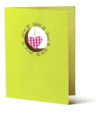ハートに切った厚紙をカードの内側に糸で吊るします。