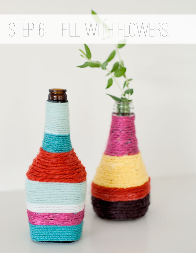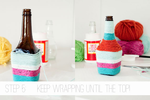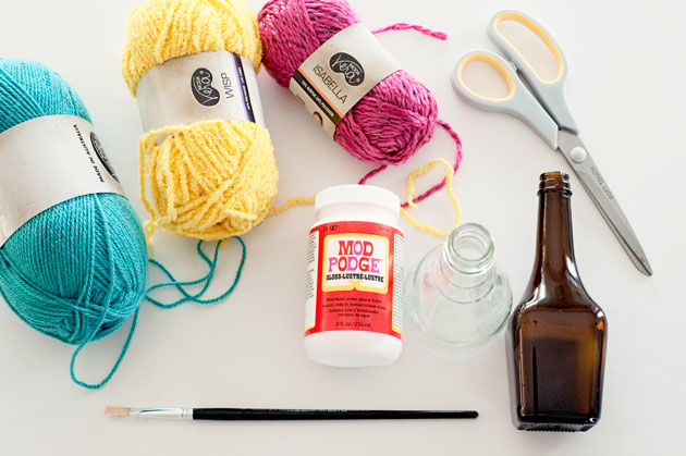 空き瓶に毛糸を巻くだけの超簡単DIYで、インテリアを