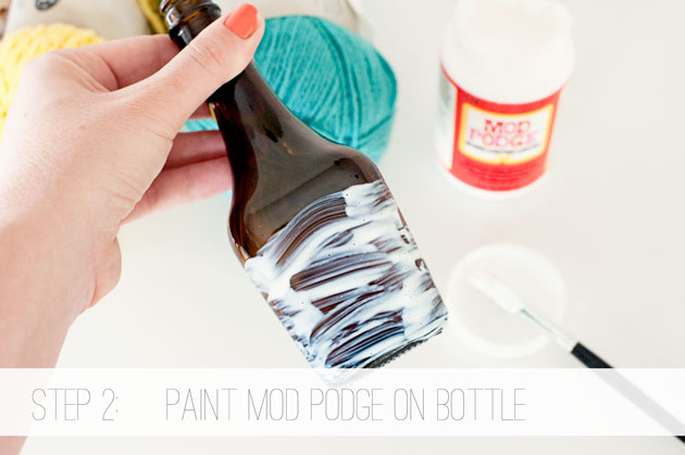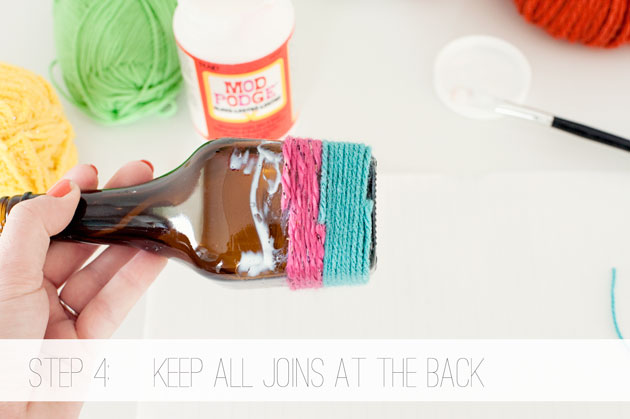 空き瓶に塗る接着剤が毛糸を巻いている間に乾いてしまわない