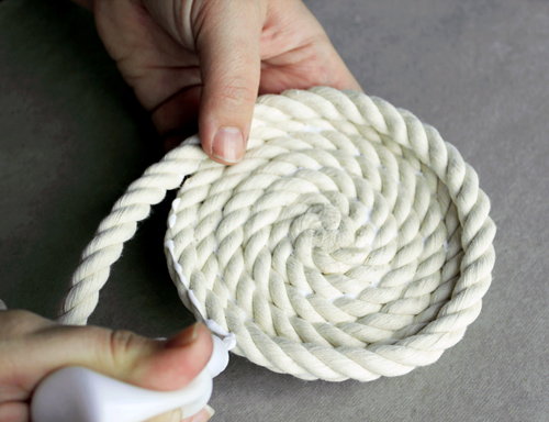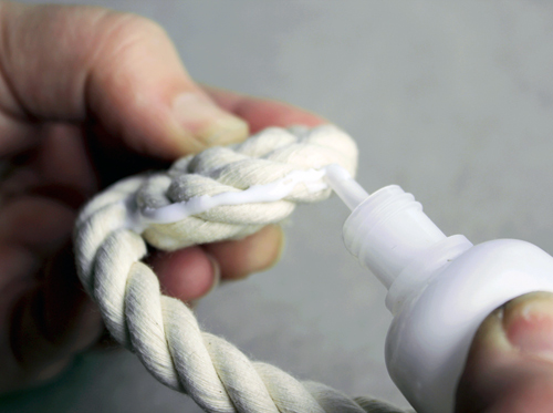 デザインを組み込みたい場所にきたら、ロープに接着剤を
