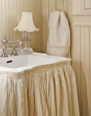 洗面エリアを飾る、シンクスカートのアイデア例です。