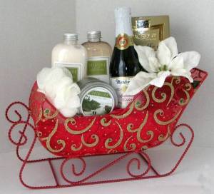 日本人はお風呂好きが多いですよね。特に長い時間お風呂でボディケアする女性には、バス用品はもらって嬉しいギフトです。バスソルト、オイル、ボディバター、スポンジなどバスセットをソリにかご詰めするだけ。見栄えのする素敵なクリスマスギフトにです。