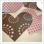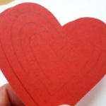 両面印刷のデザイン紙やスクラップブックを、同じ大きさのハート形に4枚カットする