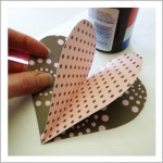 (一番外側の1周だけをのりで貼る)スパイラルを左右から引っ張りだして、中心でハートを合わせてのりでくっつける