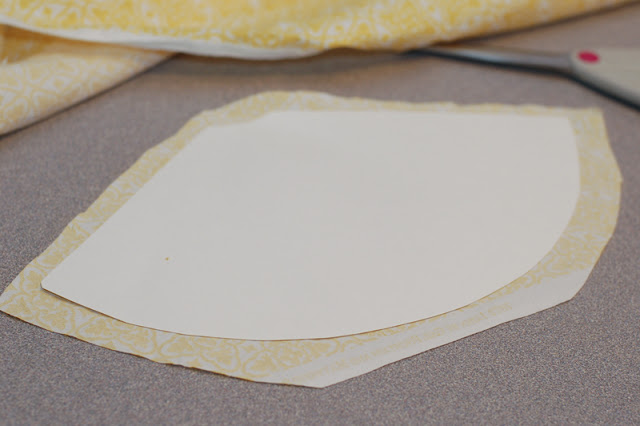 プリントしたテンプレートを厚紙に書き写し、大きめにカットした生地に、スプレー接着剤で貼る