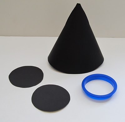 ハットをぐるりと円すい形にして、グルーガンでとめる