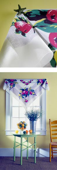 - テーブルクロスを三角形に折り、窓枠の上部コーナーに、