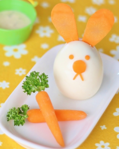 丸ごとゆで卵に、大きくスライスした人参で、ウサギの耳をあしらう