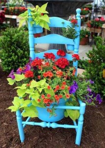 使わなくなった椅子の、素敵な再利用方法です。玄関先やお庭に見栄えする、素敵なお花の飾り方です。