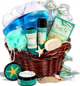 疲れを癒せるアロマグッツを集めた、癒しのギフトバスケットです。アロマキャンドル、アロマオイル、香りの良いお香、筋肉をほぐす温泉の素などなど、お母さんを癒すちょっとしたグッツを集めてバスケットに詰めたら、喜ばれるギフトになりますね。