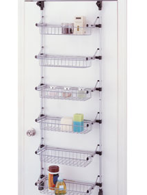 扉裏にかけれる収納には、ポケットタイプだけでなく、棚になっているものを活用するのも、いろいろな物を片付けられて便利です。