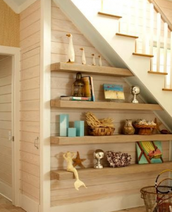 ポイントは、飾る小物が、上の段の棚にすれすれまで高くないもの。
