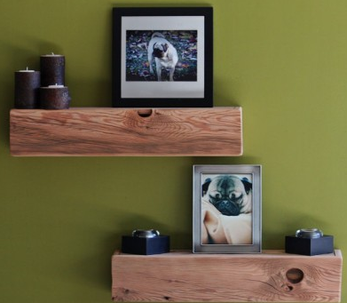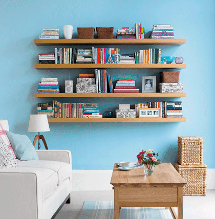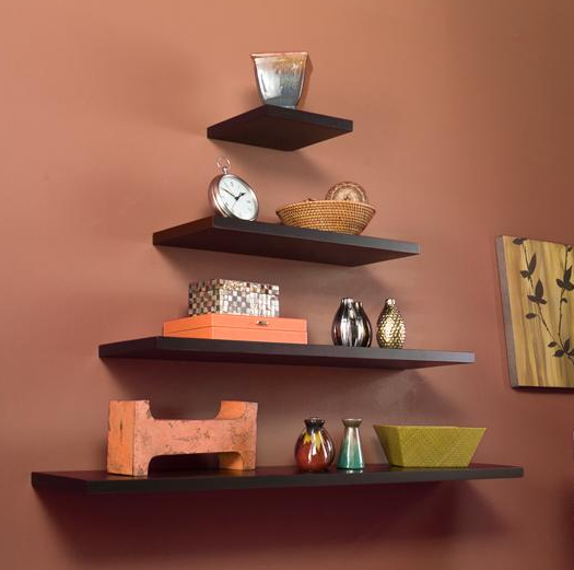 後ろの壁の色と棚の色自体を、棚に飾るものの