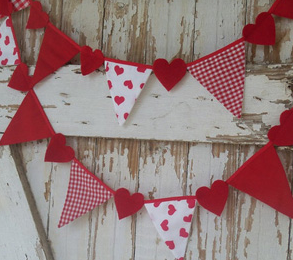 ガーランドの定番フラッグガーランドに、ハートを織り交ぜるとバレンタインらしくなります。