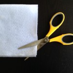 ・フェルトを2つ折りにして、ハサミで羊の耳を切り抜きます。(2つ折りにしてカットするので2枚同じものが切り抜けます)