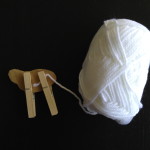 ・クリップに毛糸を挟んで、段ボールの周りにクルクルと毛糸を巻きます。