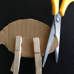 ・段ボールに木製クリップを2つ間隔をあけて挟みます。(ひつじの足になります)
