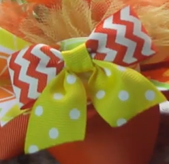 2種類のポップなリボンで、キュートな蝶々ボウを作る方法です。